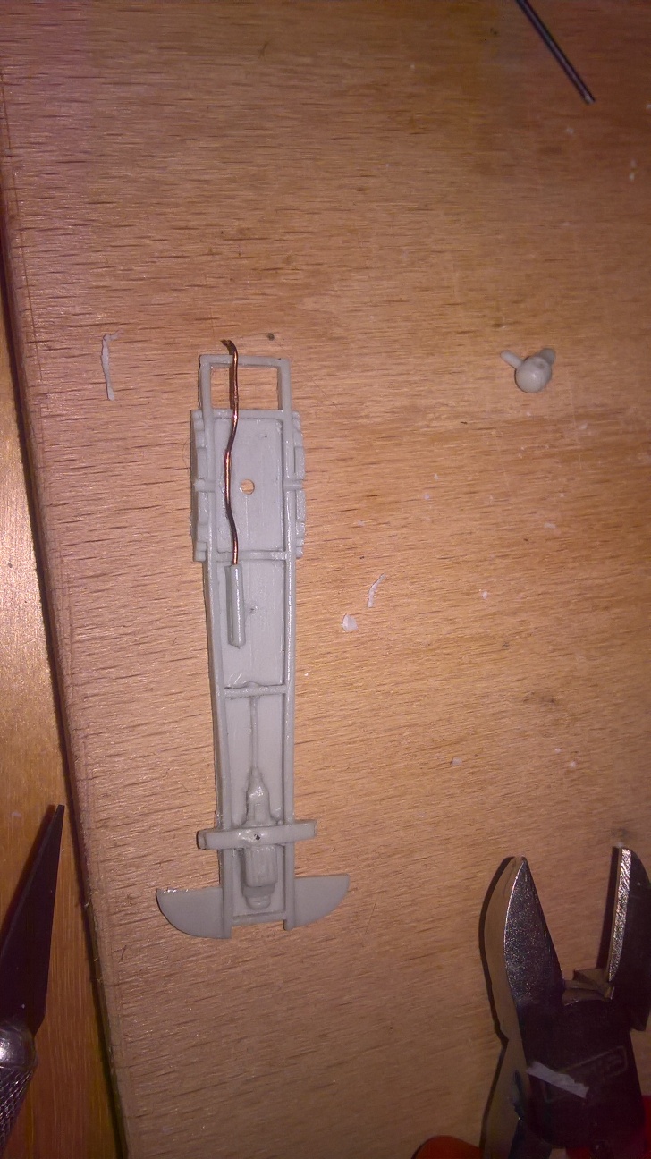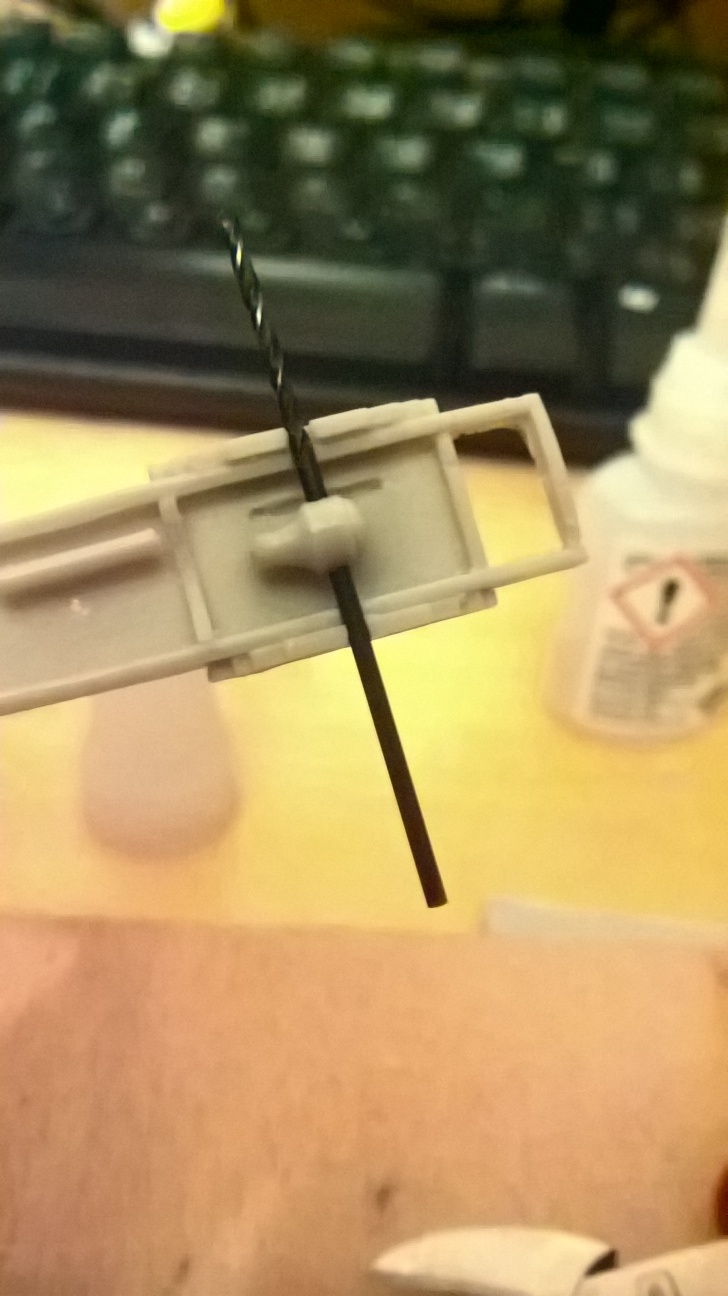 Dále vystřihneme začistíme výztuhu rámu nad zadní nápravou, má ve středu otvor, stejně jako v rámu vozidla, tyto je potřeba provrtat vrtákem o něco větším, než je čep nalitý na diferenciálu. Tímto čepem je ustaven diferenciál zadní nápravy do rámu