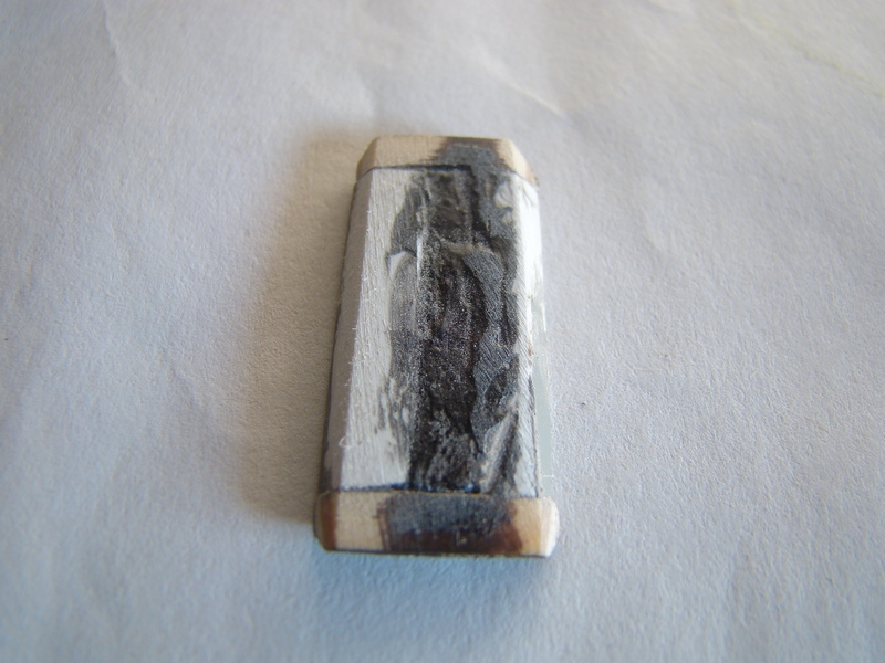 Dřevěné hranolky jsem natřel hnědou akrylovou barvou. Po zaschnutí jsem vše slepil sekundovým lepidlem a ještě ze spodní strany zafixoval zatlačením dvousložkového lepidla do mezer mezi plasty a hranolky. Ze spodní strany jsem vše musel pak sesmirkovat do roviny. Zároveň jsem srazil ještě hrany na těch krátkých dranolkách aby opět nezavazeli úchytům kolejí.