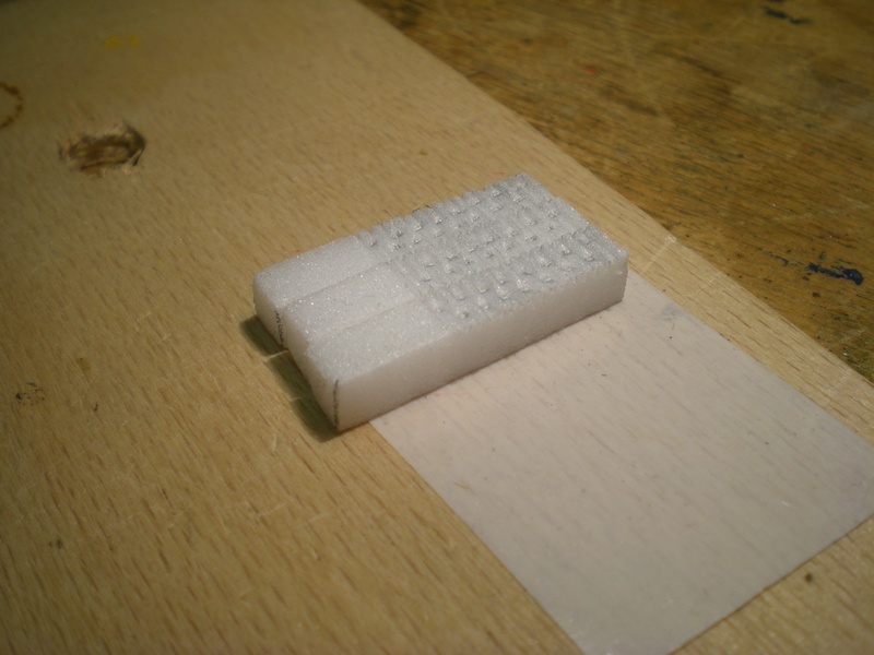 Kominy vydlabane do styroduru. Na preklizce je drzi oboustranka aby se pri ryti nehybali.