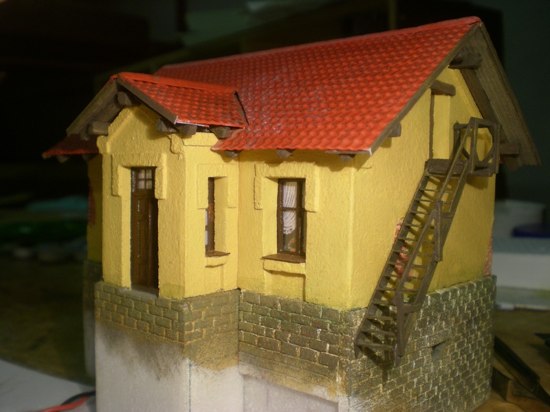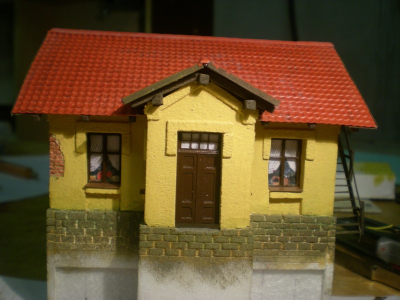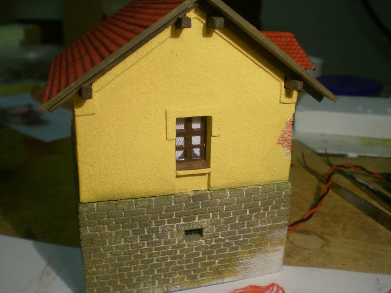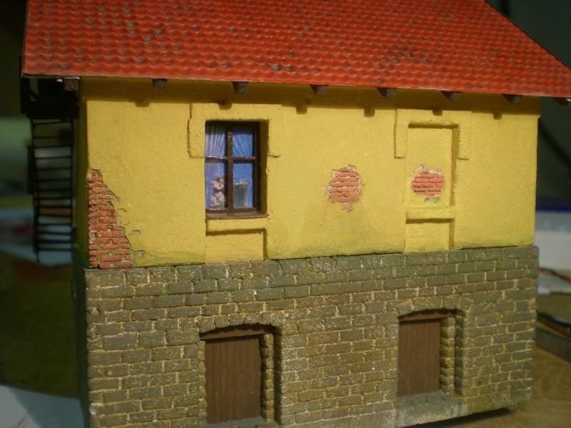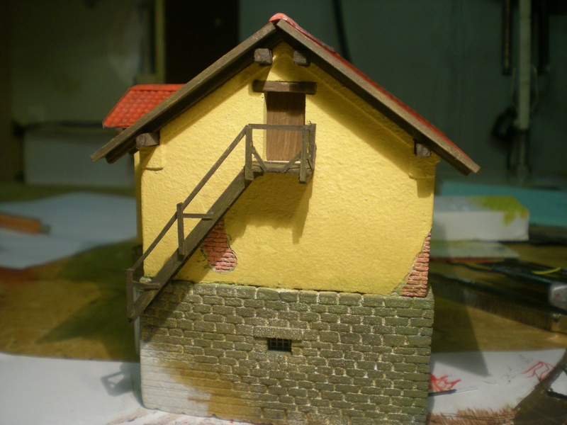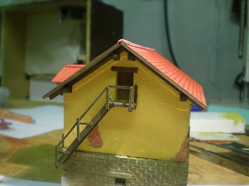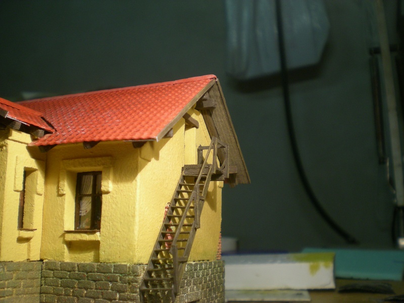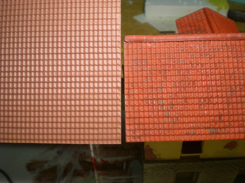 Strecha byla moc "plastova" tak jsem ji pretrel syntetikou revell mat 36 a po zaschnuti uspinil temperkou.