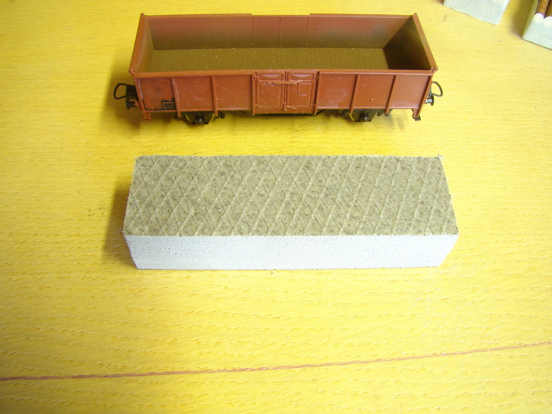 Opět jako základ je styrodur nařezaný tak aby se vlezl do vagonku.